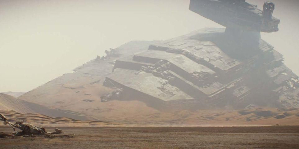 歼星舰的残骸点缀在贾库的沙漠荒地上,这是电影中为数不多的后帝国时代世界建设的例子之一(而不是只是重温帝国时代),并让观众沉浸在续集的时间轴中。