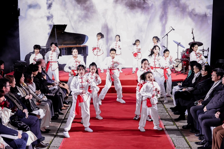 云朵音乐剧团的小朋友们用原创音乐剧《功夫》燃情开场。在中国传统民族乐器演绎的激昂现代曲风背景下,朝气蓬勃的音乐剧团小朋友们唱跳结合,在快乐真挚的歌声中将武术与现代舞完美融合,向中外来宾展示了中华传统文化的魅力。
