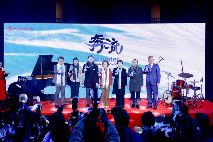 “未来的奔流”生生不息。曾在2006年第17届英国Leeds国际钢琴大赛中闯入决赛获奖,英国BBC电视台专门为其拍摄纪录片的上海钢琴家宋思衡首先演绎了上海著名作曲家陈钢和何占豪的经典作品《梁祝》,之后又为现场中外嘉宾献上其最新原创作品《奔流之声》,寓意文化交流如江河奔涌,勇往直前。配合此钢琴曲,音乐会大屏动画展现了曾获2020英国皇家肖像画协会年度大赛最高奖项“昂达杰爵士奖”的上海艺术家刘双及其工作室和英国友人们为2025奔流第二季共创的奔流礼物:大型油画作品“奔流不息:上海——伦敦”,此作品的动画展示与宋思衡的钢琴曲旋律节奏交相辉映,成为本届音乐会的亮点。